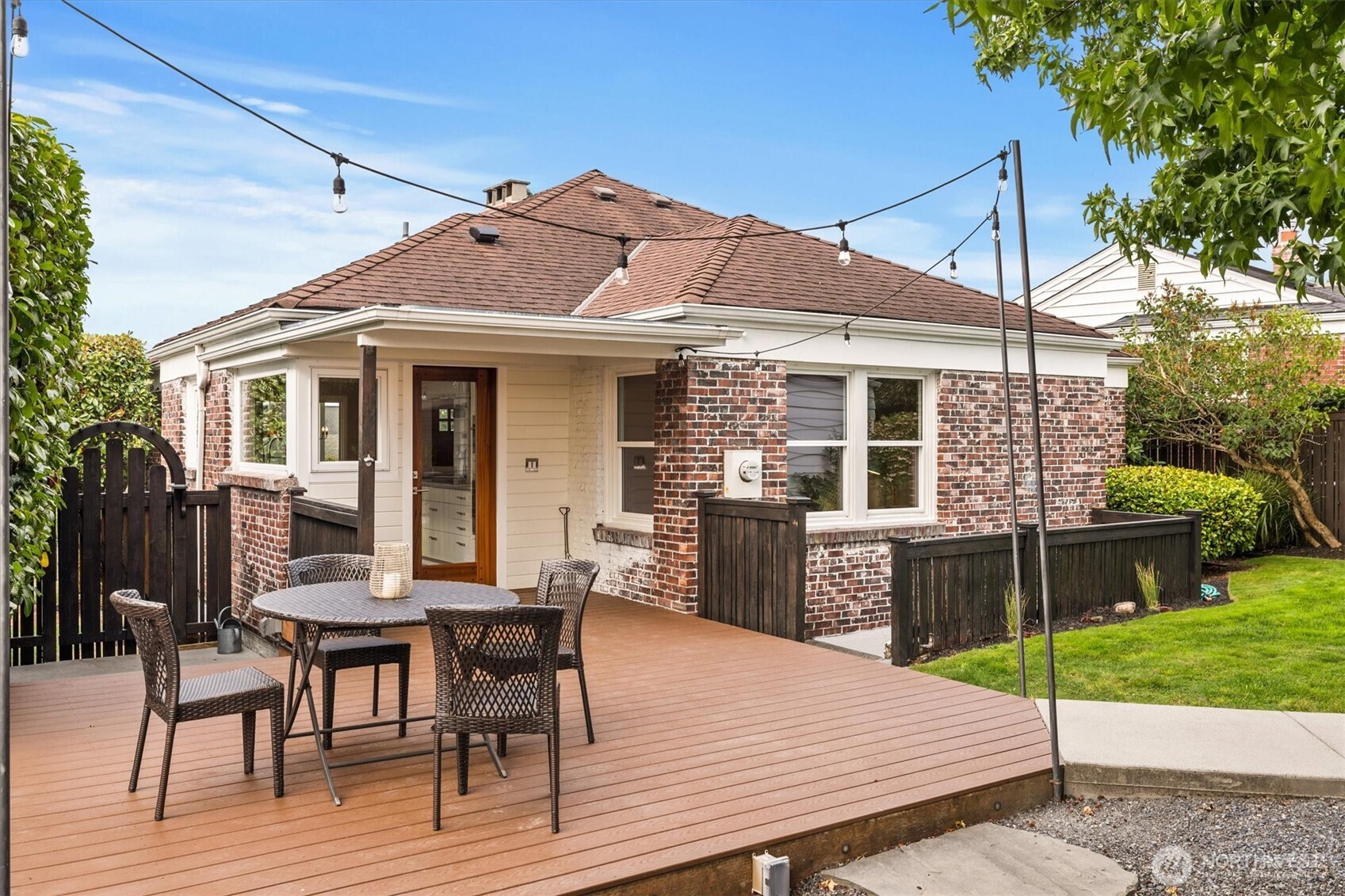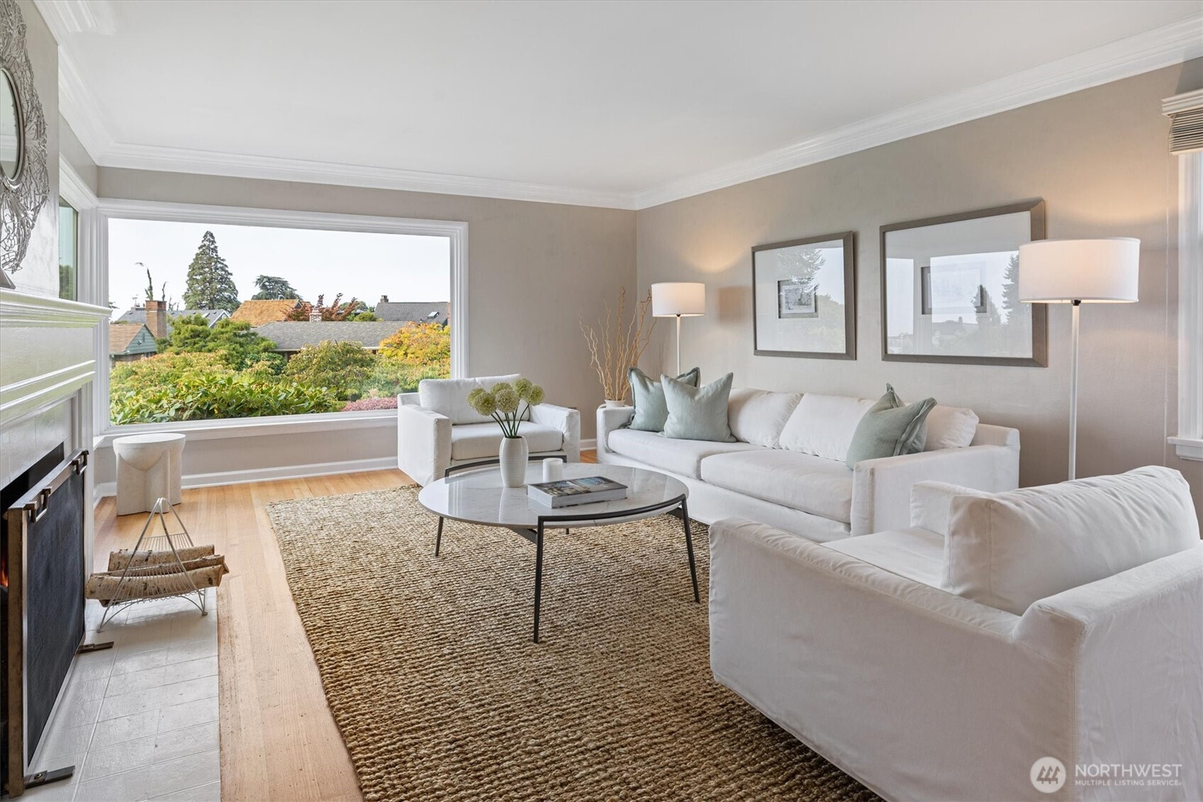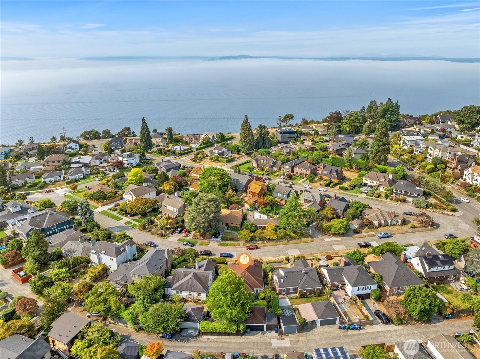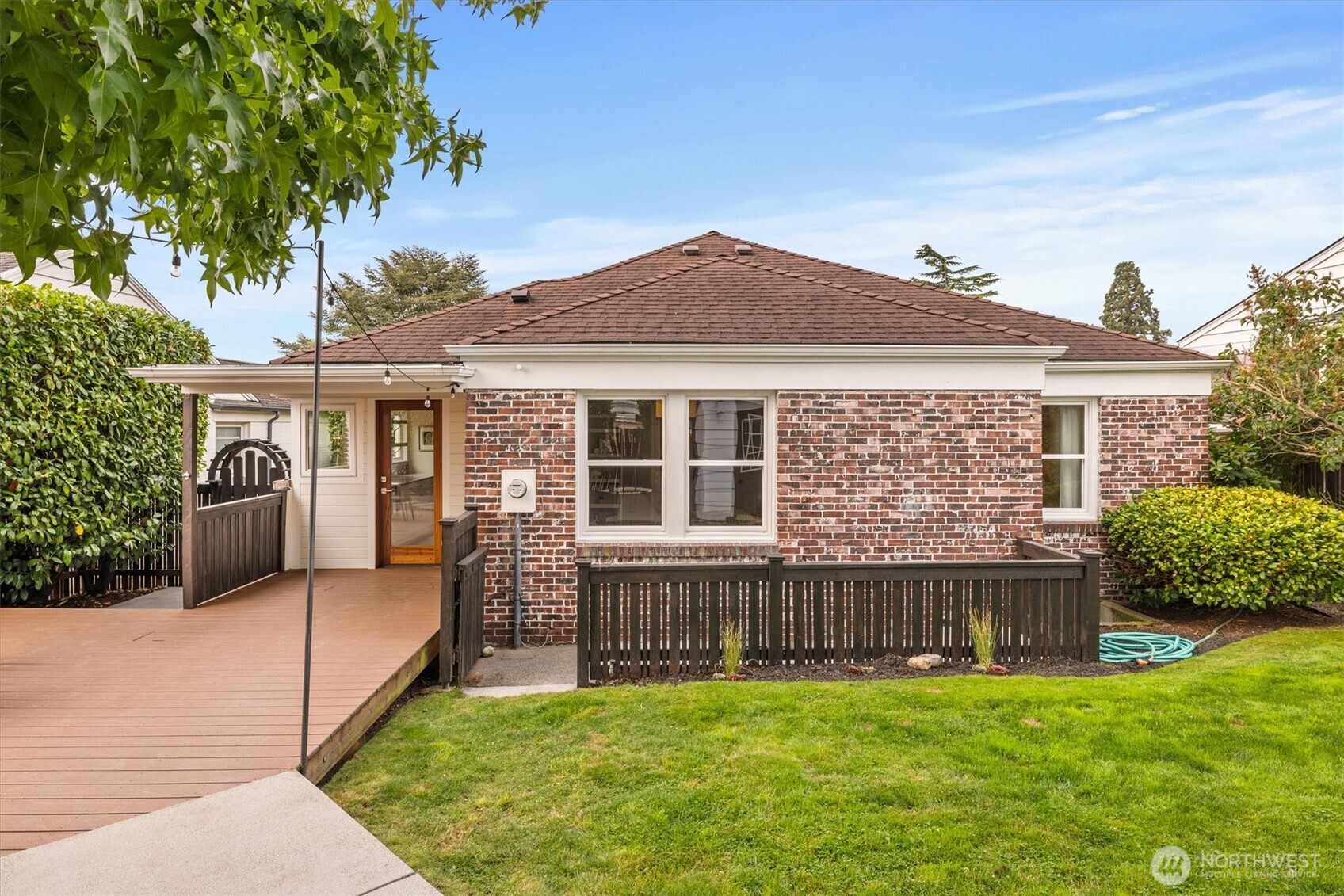 Sited above the street this 1940's white-washed brick blends timeless charm w/modern updates & captures a water view. Sun-filled spaces feature hrdwds, a sleek kitchen, spa-like primary bath, & guest 1/2 bath. The fully finished lower level offers two bedrooms, a spacious family room, 3/4 bath, office nook, and generous laundry. Outside, enjoy a level backyd with alley access to a two-car garage. Nestled on a quiet street in one of Magnolia's most sought-after neighborhoods, this home delivers character, comfort, and lifestyle--mere blks to Magnolia Blvd, the Village, parks, & schools, with easy commute to South Lake Union & Downtown Seattle by bus, bike, or car. Updates include sewer line, electrical panel, front steps, railings, and more.