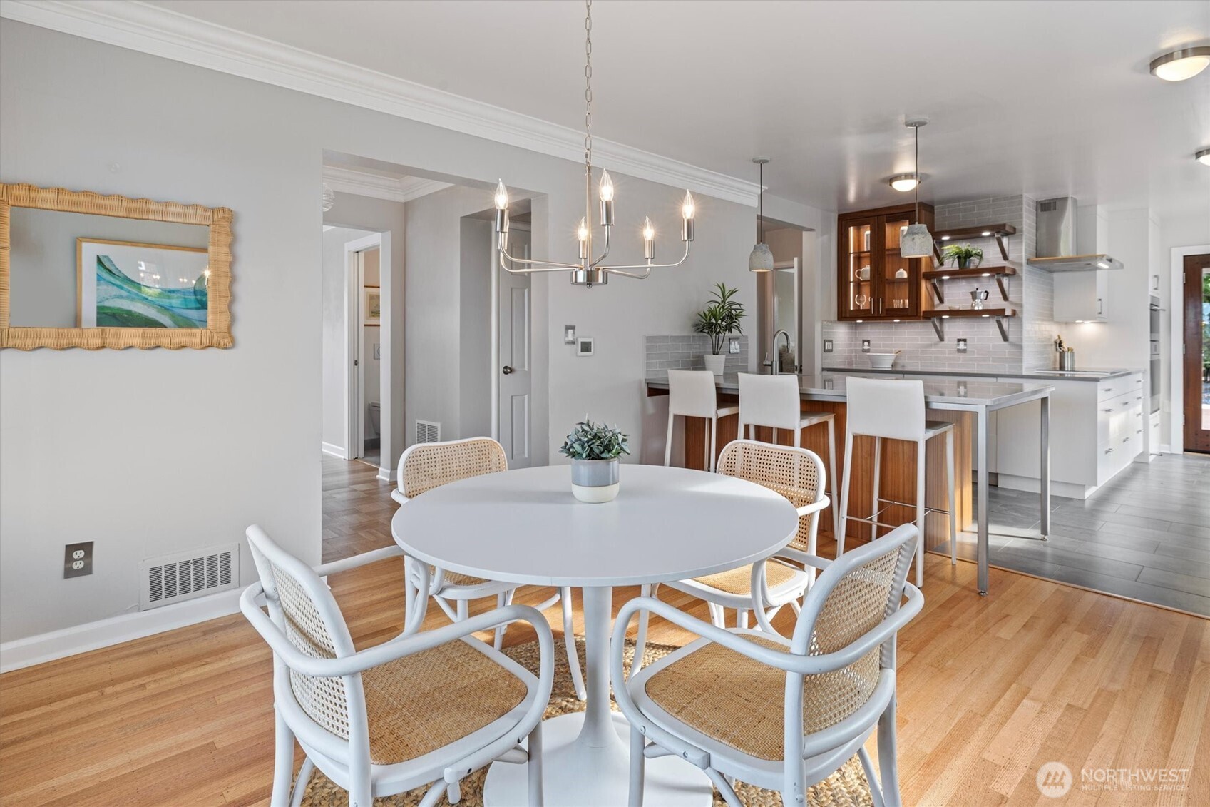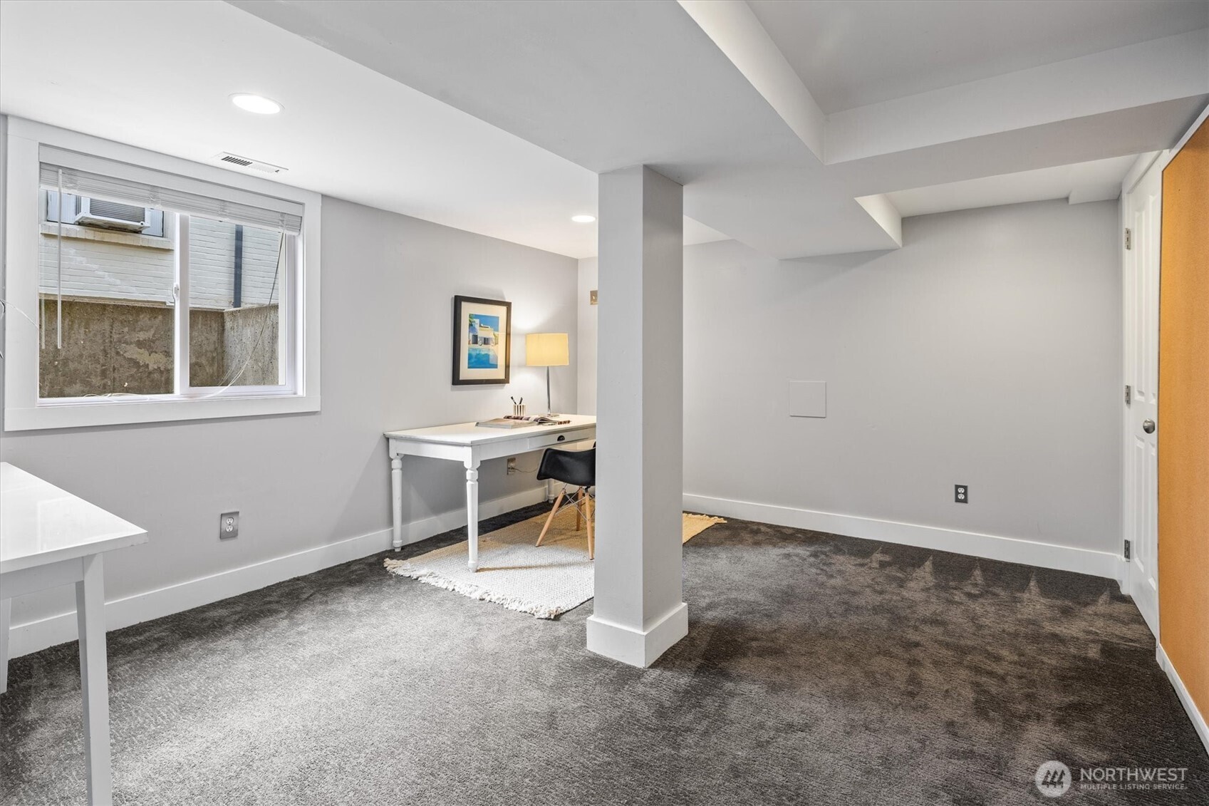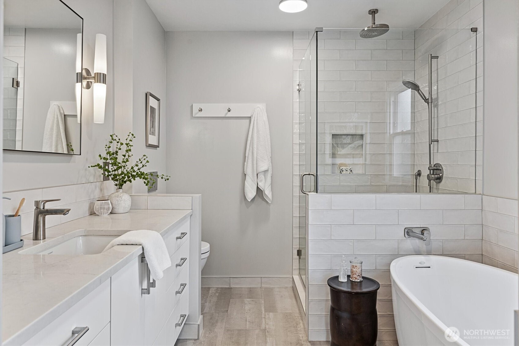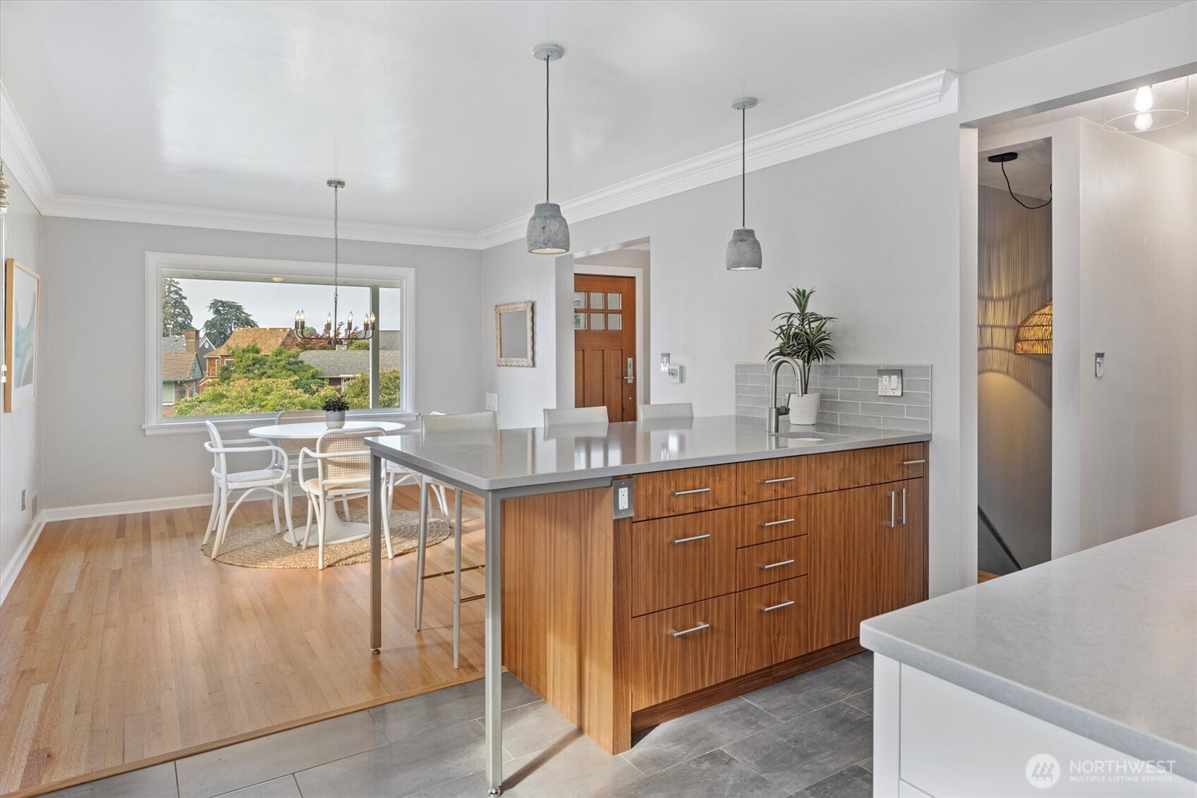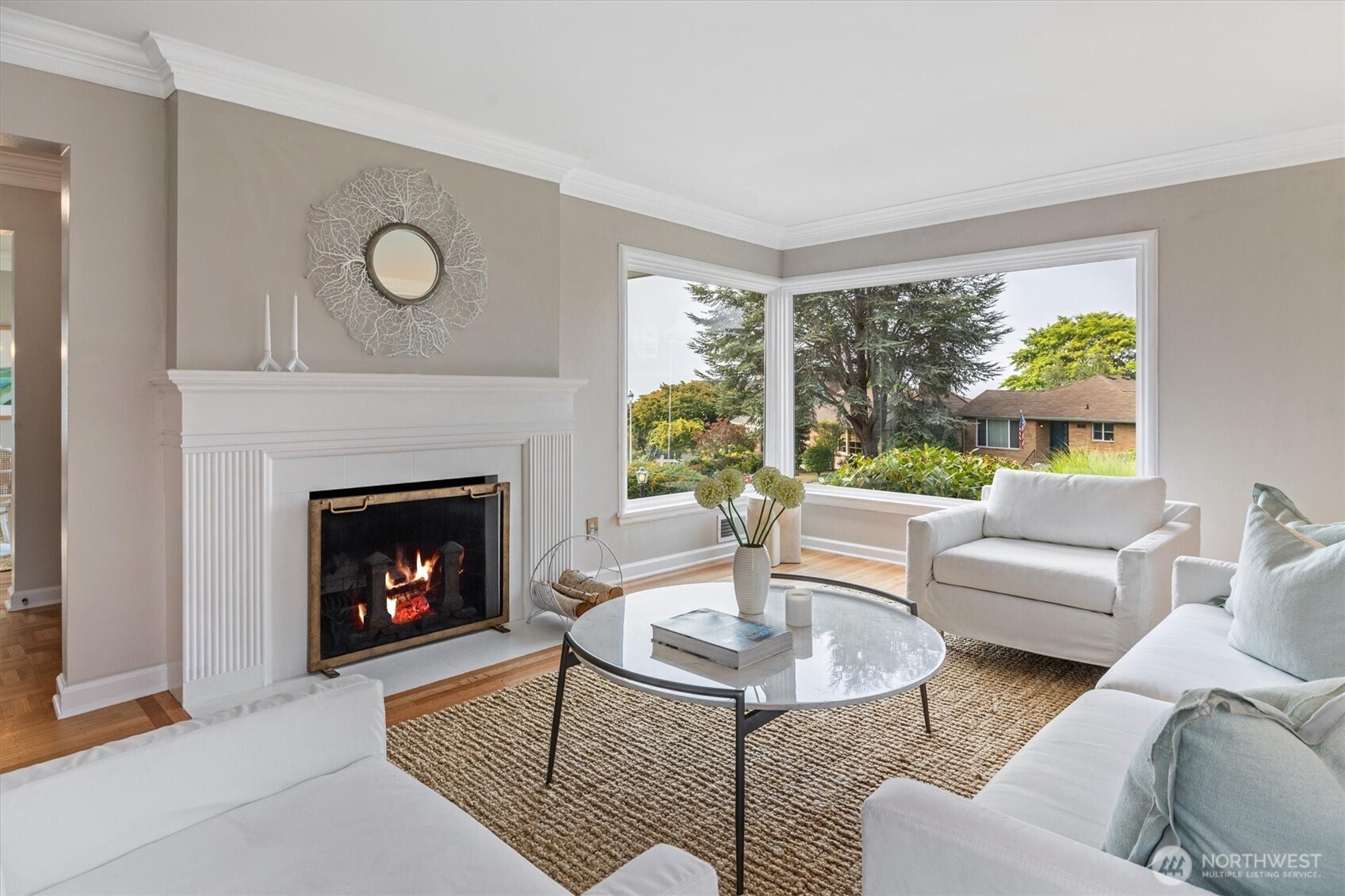 Sited above the street this 1940's white-washed brick blends timeless charm w/modern updates & captures a water view. Sun-filled spaces feature hrdwds, a sleek kitchen, spa-like primary bath, & guest 1/2 bath. The fully finished lower level offers two bedrooms, a spacious family room, 3/4 bath, office nook, and generous laundry. Outside, enjoy a level backyd with alley access to a two-car garage. Nestled on a quiet street in one of Magnolia's most sought-after neighborhoods, this home delivers character, comfort, and lifestyle--mere blks to Magnolia Blvd, the Village, parks, & schools, with easy commute to South Lake Union & Downtown Seattle by bus, bike, or car. Updates include sewer line, electrical panel, front steps, railings, and more.