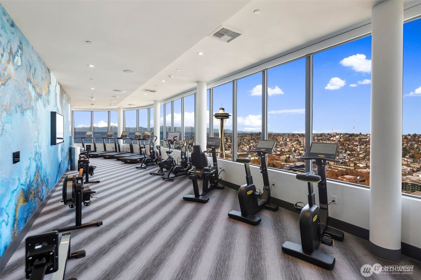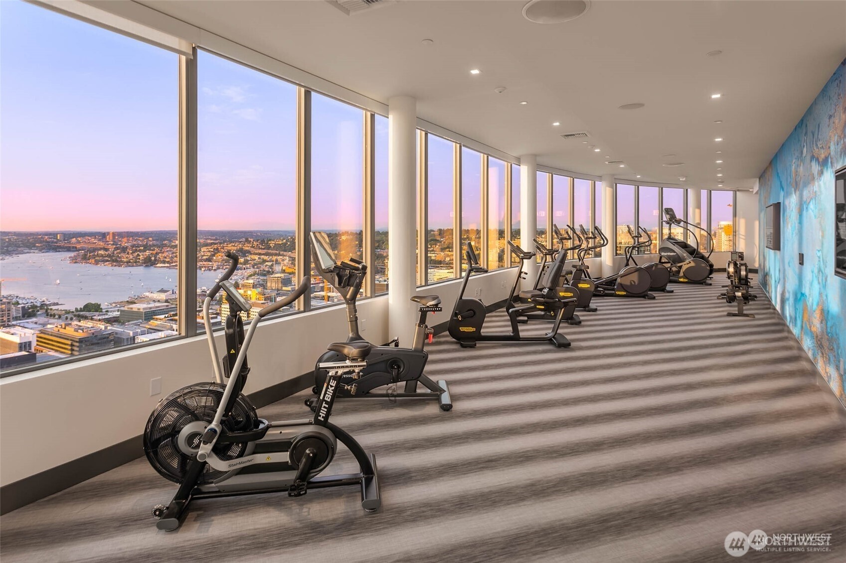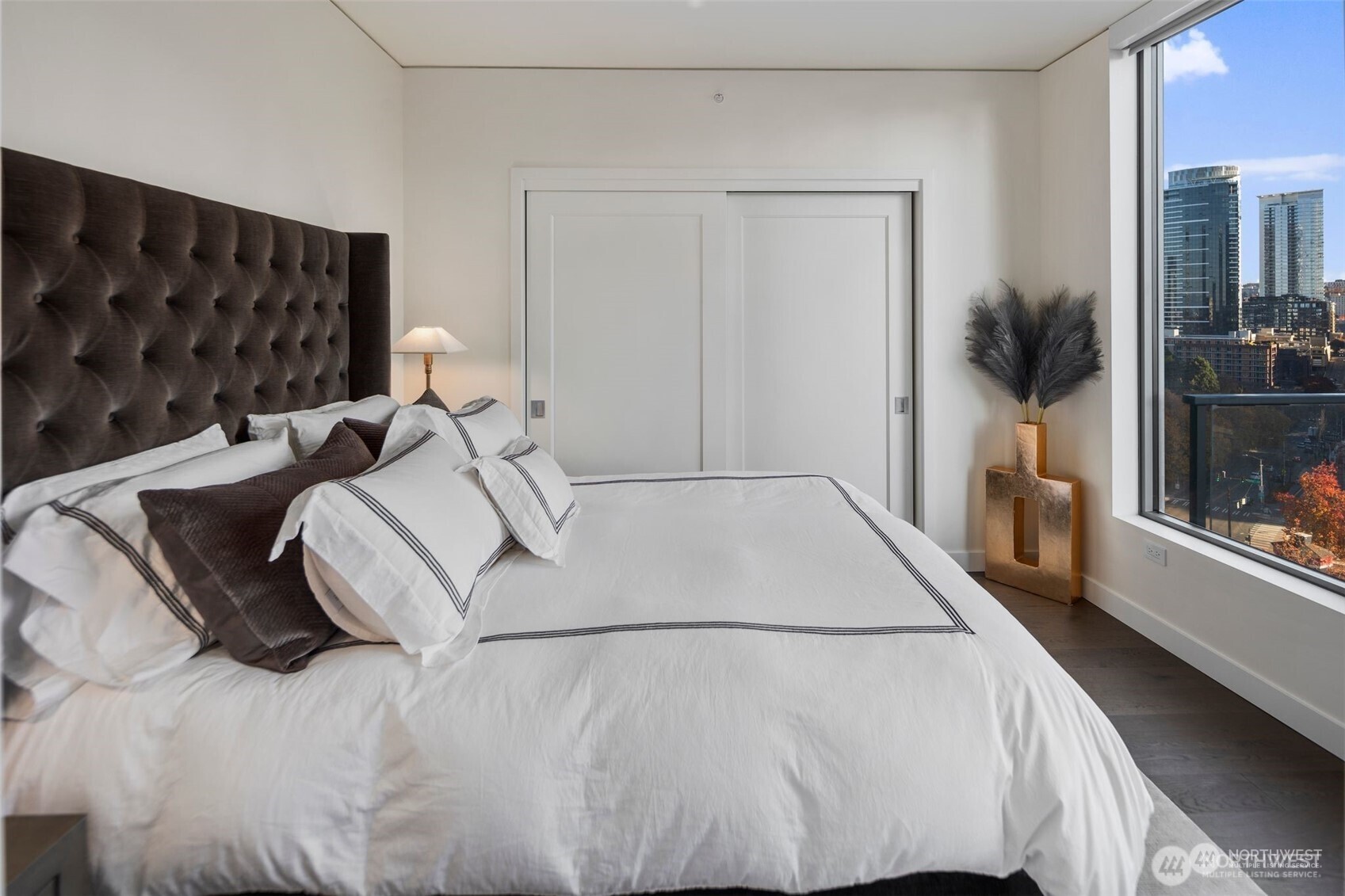Celebrate luxury living at Spire -- Seattle's premier condominium at the heart of South Lake Union, Belltown, and Denny Triangle. This exceptional 11th-floor, one-bedroom residence offers sunny southern exposure from floor-to-ceiling windows with breathtaking views of the city skyline. Residence #1103 is thoughtfully upgraded with $12,500 in custom finishes, including a designer kitchen island with added storage and seating. California closets and custom cabinetry in the bedroom and entry create seamless, functional living spaces. The L-shaped kitchen features premium Bosch appliances. Soaring 9-foot ceilings and expansive windows create an airy, lofty home. The serene bedroom retreat extends to a private balcony -- an intimate vantage above the city, perfect for morning sunrises and evening unwinding.Just moments from Amazon, Google, and Seattle's most celebrated dining and cultural destinations, including the Space Needle and Pike Place Market. This residence offers unparalleled access with a Walk Score of 98 -- placing the best of the city at your doorstep! Spire's extraordinary amenities are world-class. The 40th floor offers panoramic views of the Space Needle, Lake Union, and Puget Sound. Wrap-around terraces feature BBQs, fireplaces, a full dining room and kitchen, and the exclusive Spire Club. The 41st floor features a fitness center, movement studio, theater, co-working spaces, and private conference rooms.